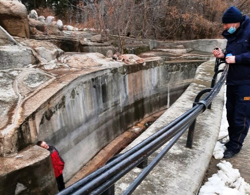 Gdy przyjechaliśmy na miejsce, zobaczyliśmy mężczyznę w średnim wieku, który chodził po betonowych górkach na terenie wybiegu. Był wystraszony i mokry. Po chwili zszedł do fosy i zaczął ustawiać na sobie metalowe kosze, które tam leżały. Poleciliśmy mu, by tego nie robił i wezwaliśmy straż pożarną – opowiada strażniczka, która brała udział w akcji.