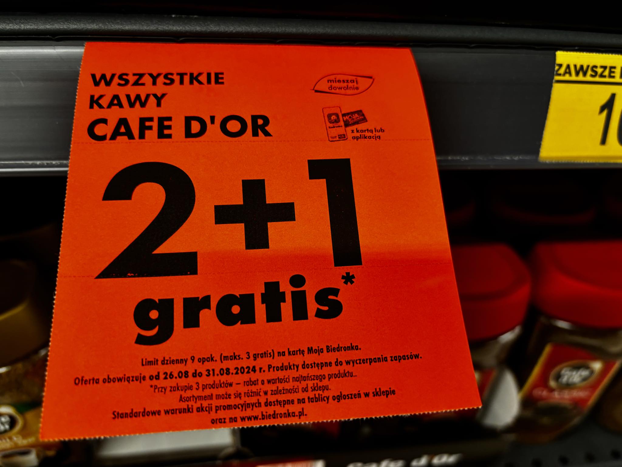 Miłośnicy kawy mają powody do radości! Od poniedziałku, 26 sierpnia, sieć Biedronka uruchamia niesamowitą promocję na cały asortyment kaw Cafe d’Or, oferując zakupy w formule „2+1 gratis”. Ta atrakcyjna oferta potrwa aż do końca miesiąca, dając kawoszom świetną okazję do zaopatrzenia się w swoje ulubione blendy.