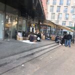 Na schodach siedzą bezdomni, niektórzy wyjmują coś ze swojego dobytku, niektórzy tylko rozmawiają. Niestety co do zapachu musimy przyznać Czytelniczce rację. Wokół tego miejsca wyczuwalna jest silna woń alkoholu i moczu.