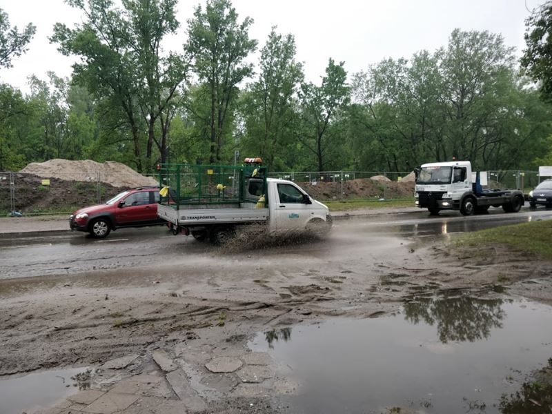 Krążąca nad Warszawą burza i ulewne deszcze zalewają kolejne ulice.