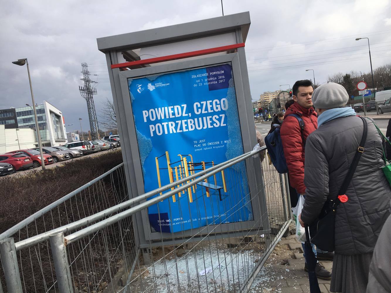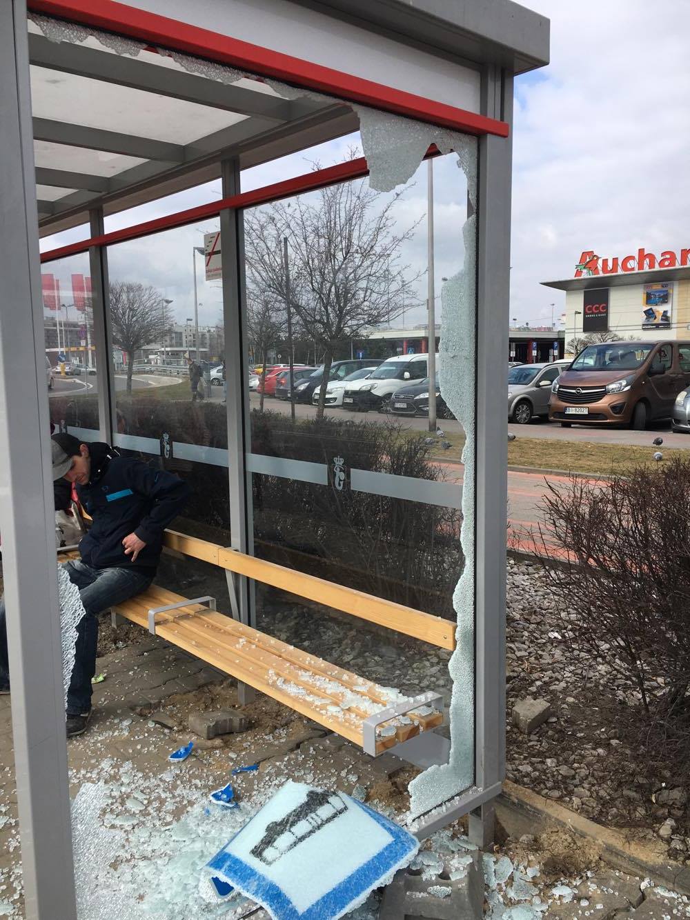 Kolejne zdemolowane auta w tej samej okolicy. Zniszczono też przystanek. O sprawie powiadomiono policję