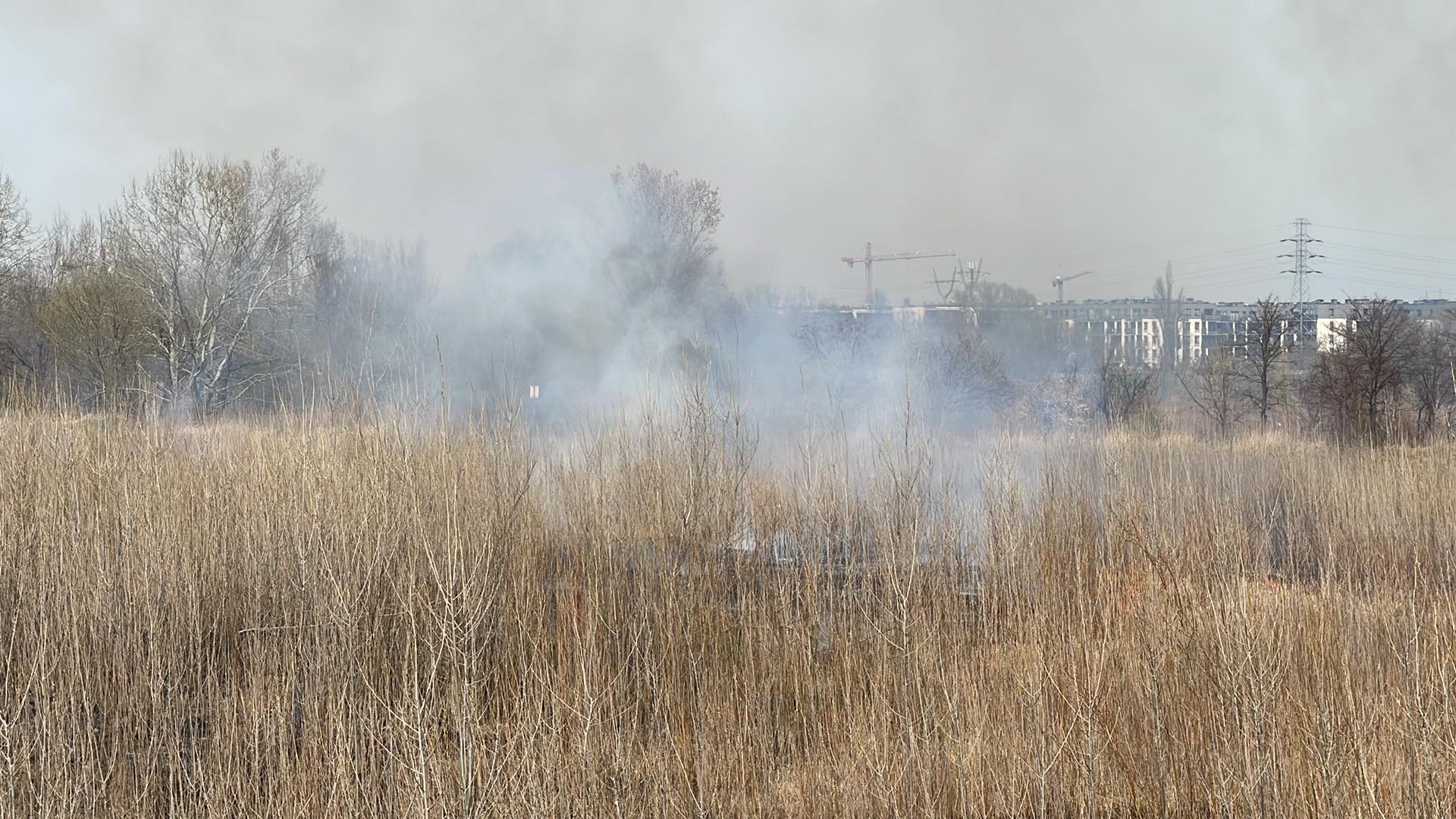 Przy ulicy Myśliborskiej na Białołęce doszło do dużego pożaru traw. Ogień szybko się rozprzestrzeniał przez silny wiatr i kierował w kierunku zabudowań, gdzie obok było przedszkole.