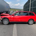 Na węźle Konotopa na zjeździe z S2 na trasę S8 doszło do kolizji BMW z Audi. Kierujący audi oddalił się z miejsca zdarzenia pieszo.