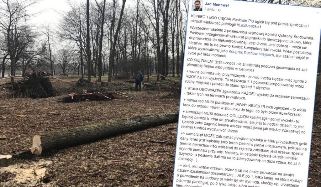 Wyszedłem właśnie z posiedzenia sejmowej Komisji Ochrony Środowiska. Posłowie przegłosowali wreszcie poprawki do nieszczęsnej ustawy, która doprowadziła do niekontrolowanej rzezi drzew. Jest dobrze – może nie idealnie, ale to na pewno koniec kompletnej samowolki. Wiele postulatów, które wysuwaliśmy jako Kongres Ruchów Miejskich, ma szanse wejść w życie już lada moment!