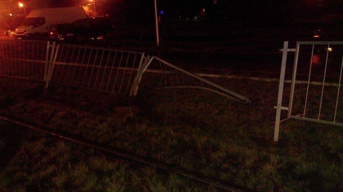 Kręcił bączki, wpadł w poślizg, skosił znak, przejechał torowisko, uderzył w barierki i… pojechał dalej