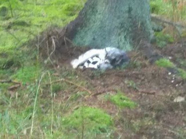 Ktoś wyrzucił ciężarną sukę do lasu. Oszczeniła się pod drzewem skazana na śmierć