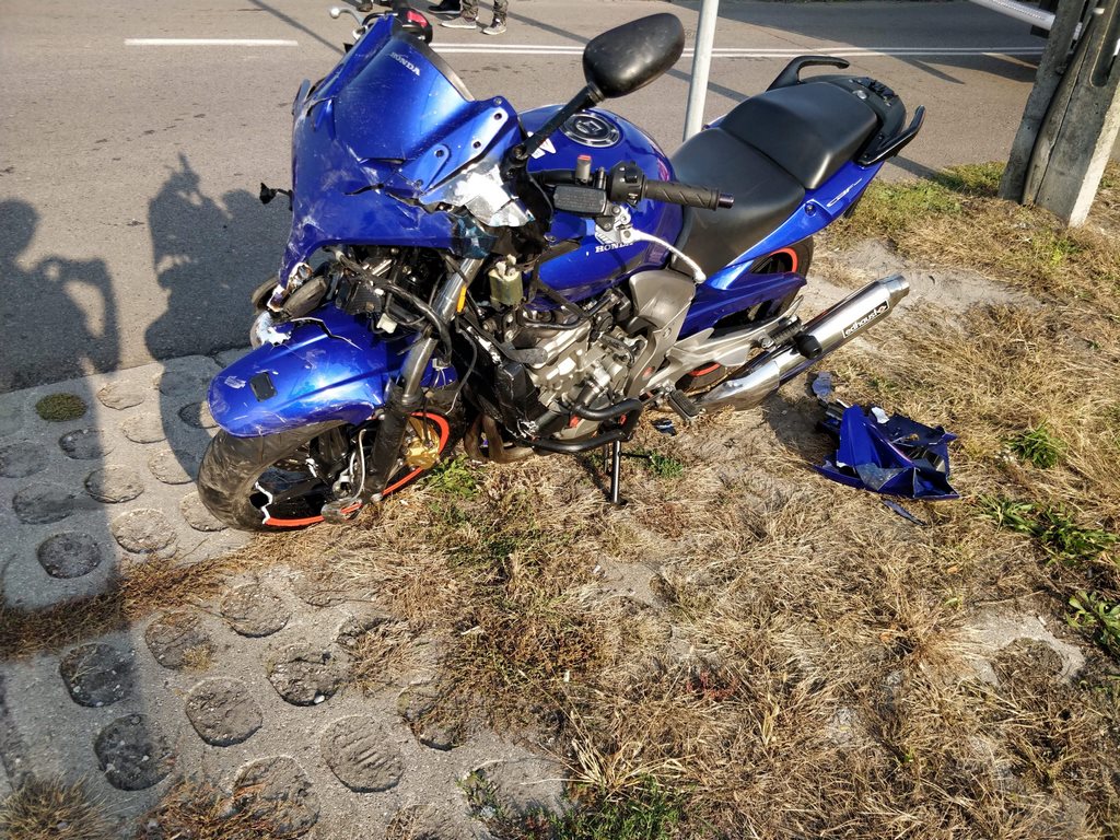 47-letni motocyklista został odwieziony do szpitala ze złamaniami kończyn dolnych i ogólnymi potłuczeniami. Dalsze badania wykażą czy odniósł inne obrażenia.
