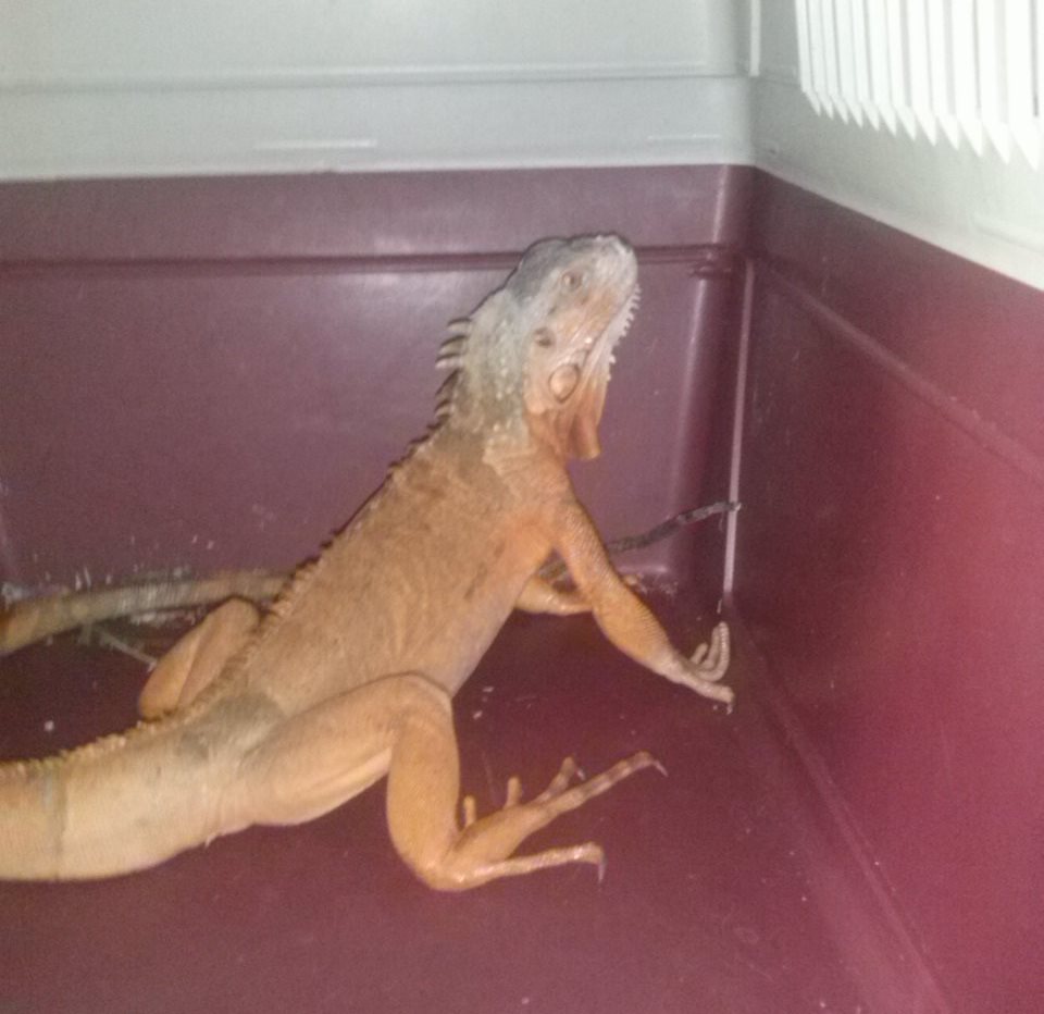 „Gad siedział na gałęzi, ok. 5 metrów nad ziemią. Nie wyglądał na wycieńczonego, nie miał też żadnych widocznych obrażeń. Został przez nas odłowiony i przewieziony do Ogrodu Zoologicznego” – relacjonował mł. spec. Mariusz Bontruk z Patrolu Eko. Według funkcjonariusza zwierzę najprawdopodobniej wydostało się z niewłaściwie zabezpieczonego terrarium.