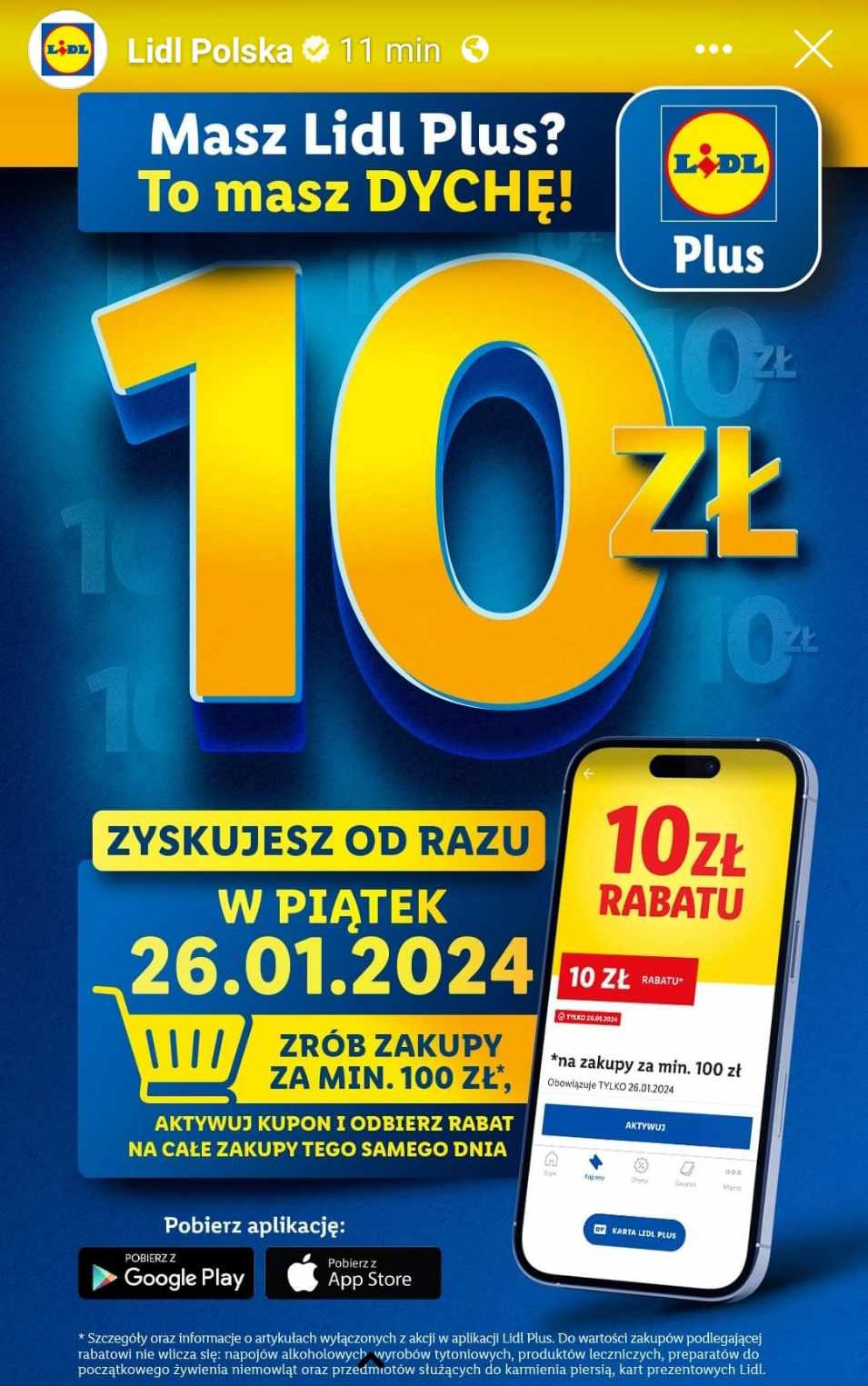 Zainteresowani klienci powinni pamiętać, że promocja jest ważna tylko w piątek, 26 stycznia 2024 roku. Aby skorzystać z oferty, wystarczy pobrać aplikację Lidl Plus z Google Play lub App Store i aktywować kupon rabatowy.