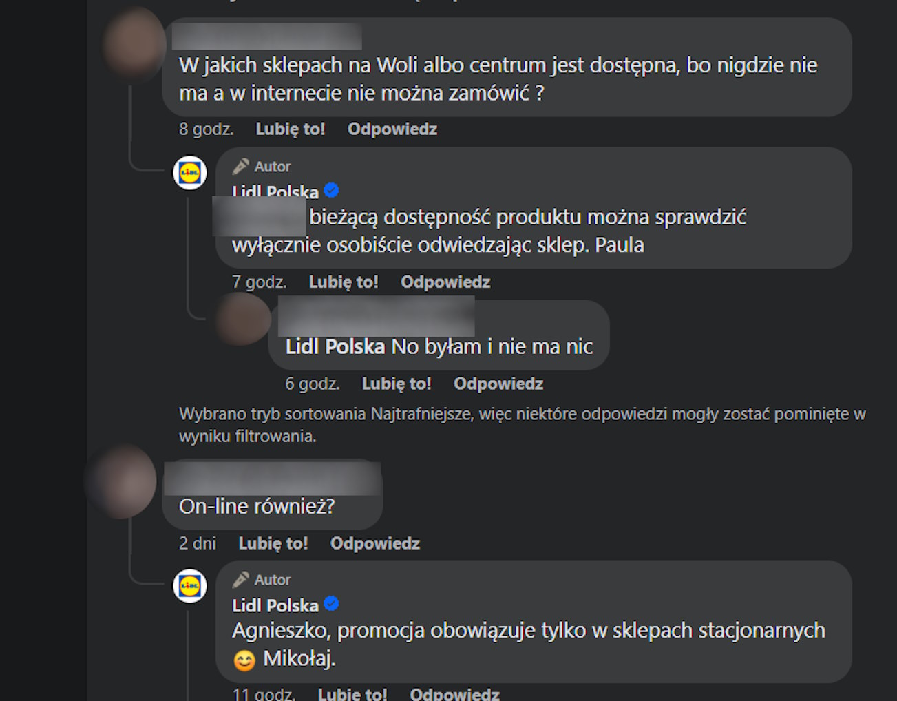 Klienci pytali również, czy istnieje możliwość zakupu produktu online, jednak przedstawiciele sieci Lidl odpowiedzieli, że oferta dostępna jest wyłącznie w sklepach stacjonarnych. Ta sytuacja wywołała dyskusję na temat praktyk marketingowych i obsługi klienta w sieci Lidl, podkreślając potrzebę lepszego zarządzania zapasami i komunikacji z klientami, szczególnie w przypadku popularnych promocji.