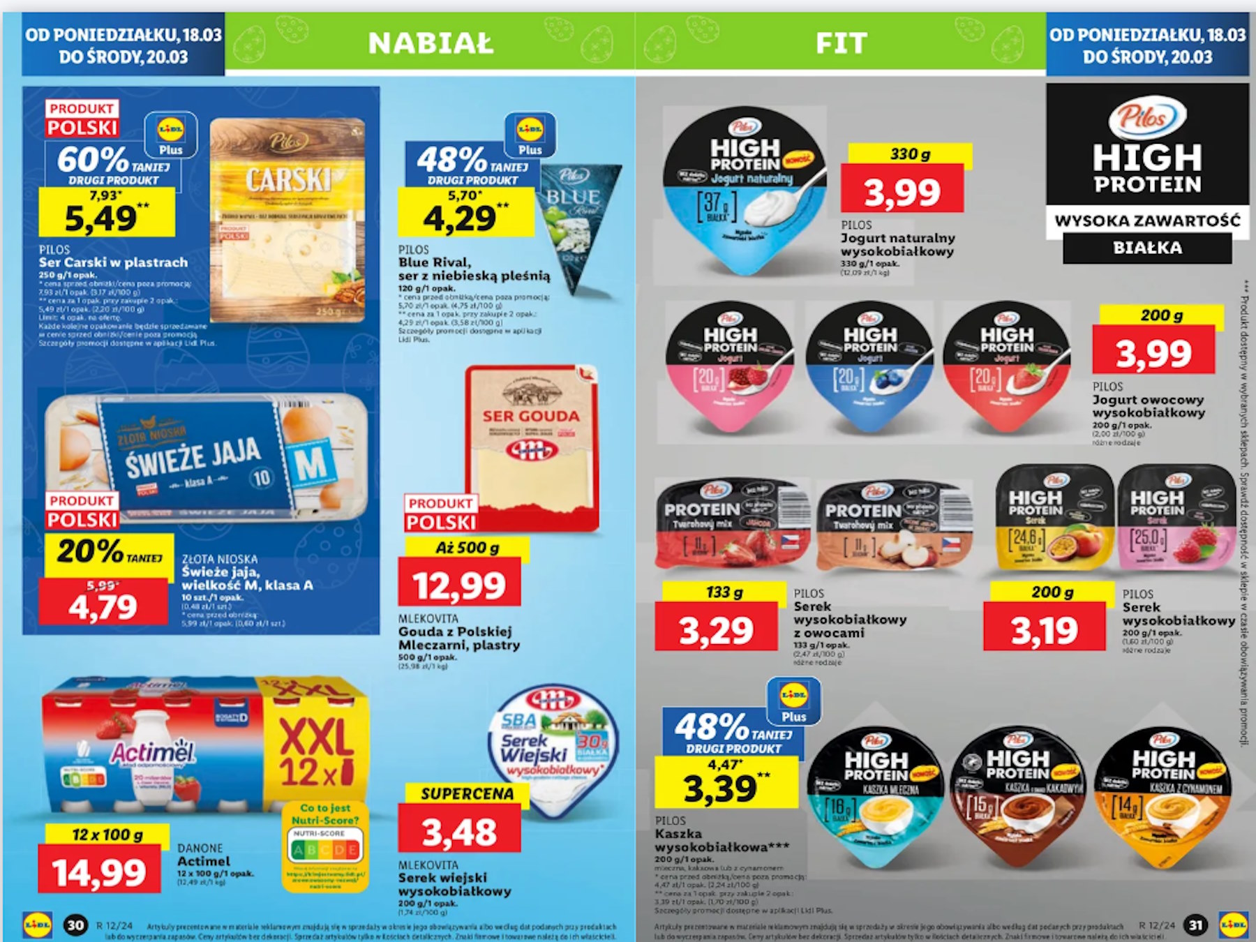 Wśród promowanych artykułów znajdziemy m.in. naturalny jogurt wysokobiałkowy, który idealnie wpisuje się w potrzeby osób aktywnych fizycznie, a także różnorodne sery, takie jak gouda czy serek wiejski w wielu smakach, będące doskonałym źródłem wapnia. Nie zabraknie również świeżych jajek z wolnego wybiegu, które są podstawą wielu zdrowych i pożywnych posiłków.