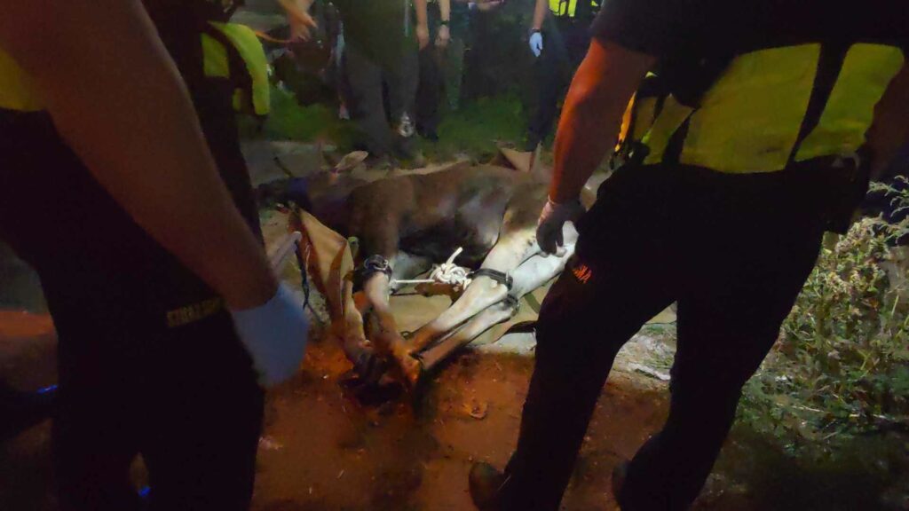 Po zabezpieczeniu łośa, weterynarze dokonali podstawowych badań, aby upewnić się, że jest on w dobrej kondycji. Zwierzę zostało umieszczone w specjalnie przygotowanym pojeździe, którym zostanie przetransportowany do lasu, znacznie z dala od miejskiej aglomeracji.