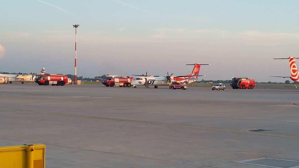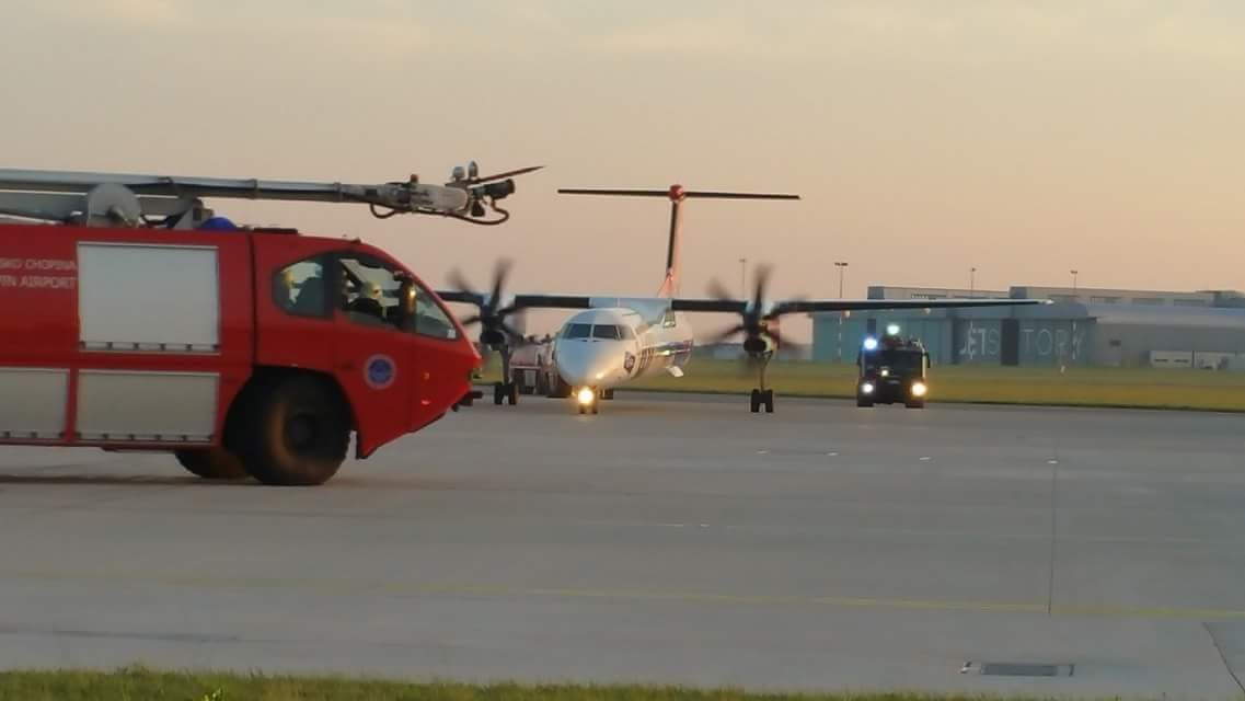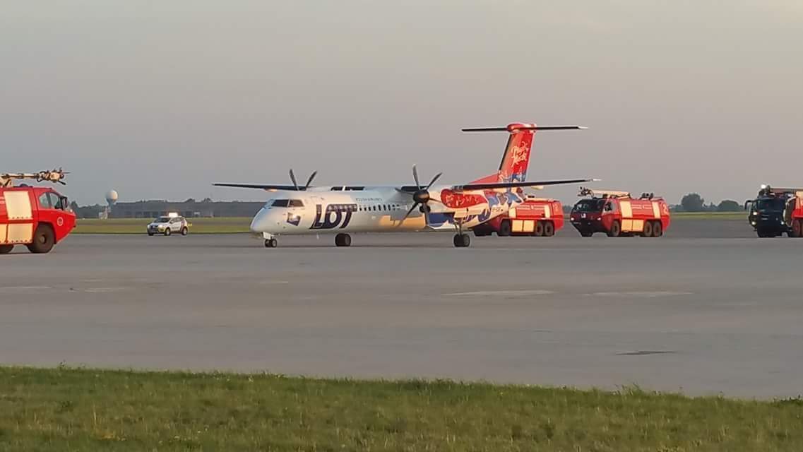 Samolot marki Bombardier Dash 8 Q400 Polskich Linii Lotniczych LOT lądował w asyście.