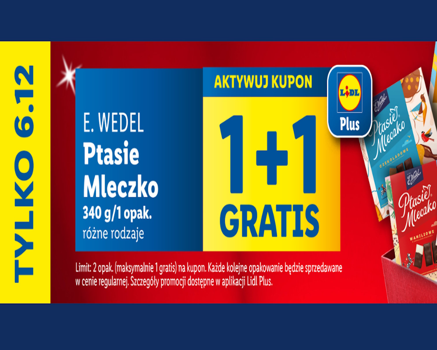 W środę, 6 grudnia, w sklepach sieci Lidl będzie dostępna atrakcyjna promocja na produkt E. WEDEL Ptasie Mleczko.