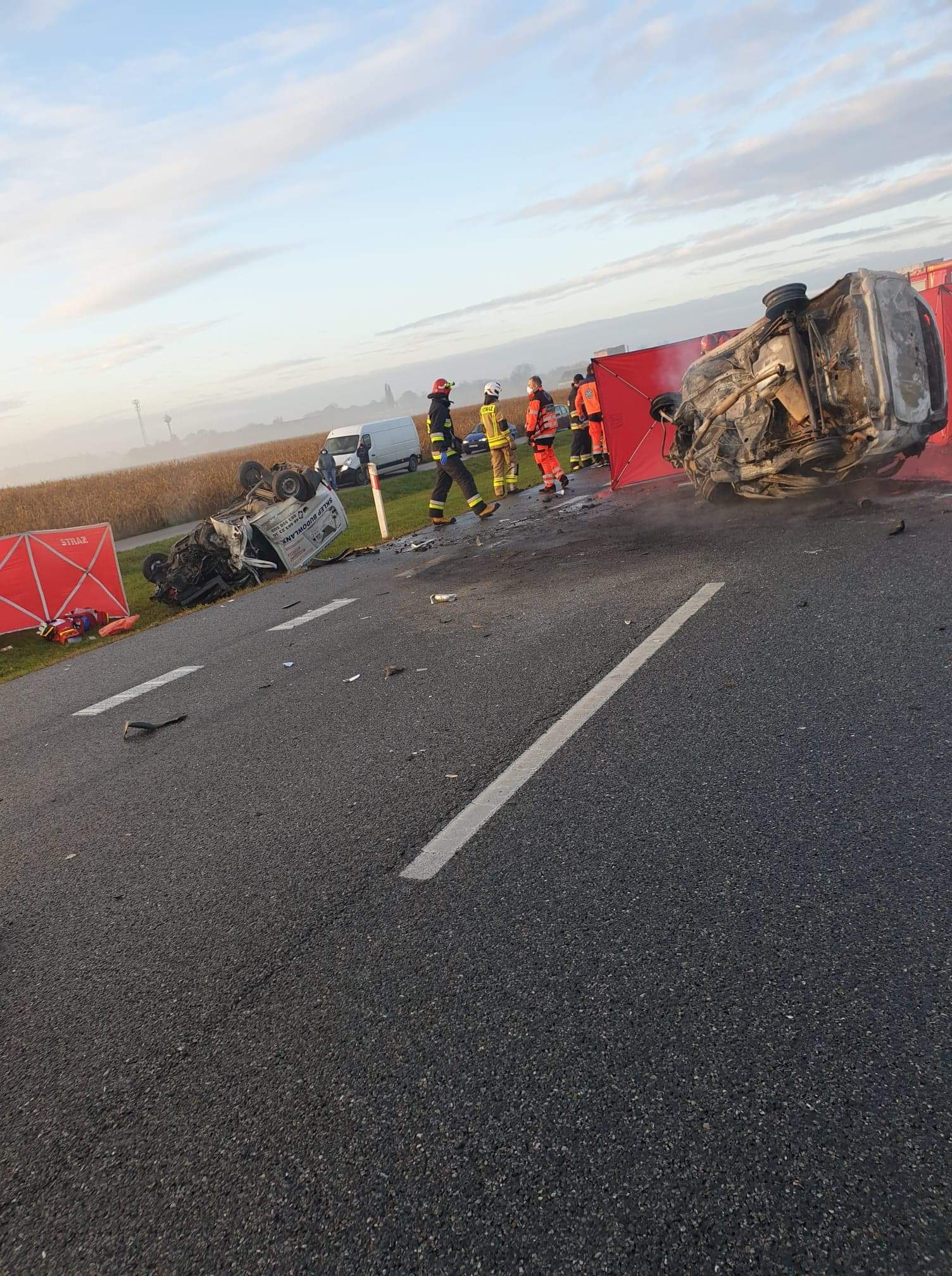 Dwie osoby podróżujące samochodem osobowym spłonęły w aucie, trzecia osoba zginęła z busa, z tego też pojazdu jedna osoba trafiła do szpitala.