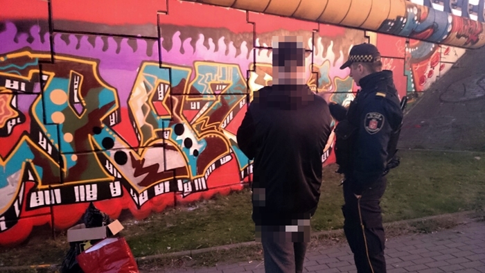 Kwadrans przed godz. 16 przechodzień przekazał na numer alarmowy 986 informację o 2 mężczyznach, którzy dewastowali ścianę przy Trasie Siekierkowskiej. Strażnicy z VII Oddziału Terenowego, którzy udali się na miejsce, podjęli interwencję wobec dwóch młodych mężczyzn. Jeden z nich malował sprayem elewację przy tunelu przejścia dla pieszych od strony Wału Miedzeszyńskiego. Graffiti miało powierzchnię blisko 22 metrów kwadratowych. Po wylegitymowaniu obu mężczyzn przekazano policji.