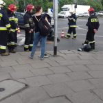 Motocyklista został przetransportowany do szpitala. Nie wiadomo jaki jest stan poszkodowanego. Straż pożarna zabezpiecza pojazd.