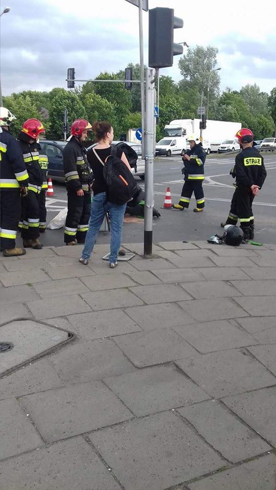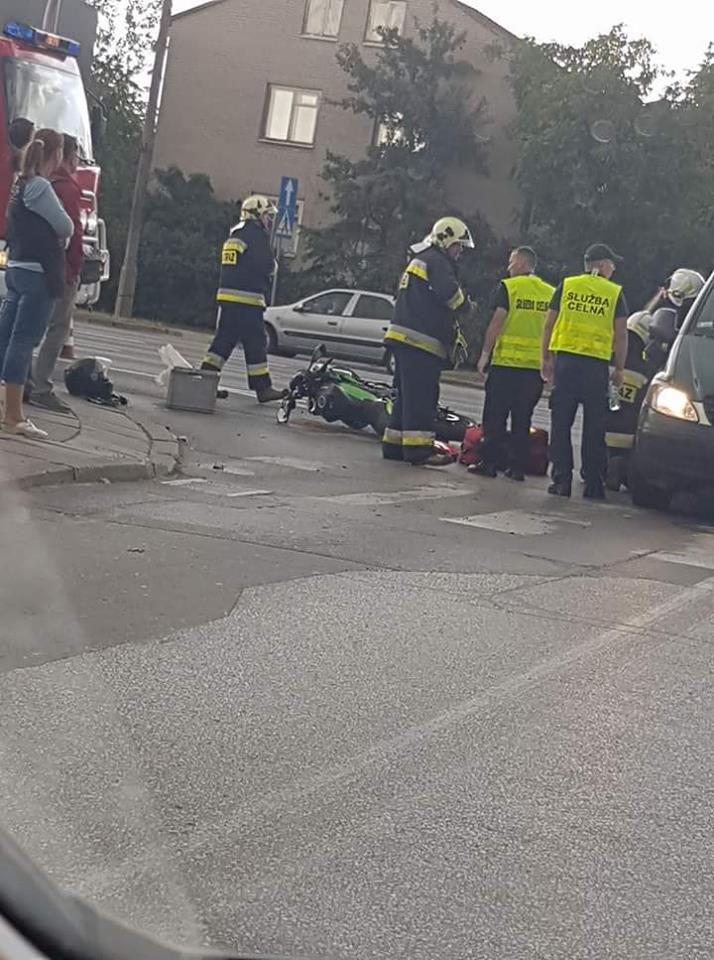 Motocyklista został przetransportowany do szpitala. Nie wiadomo jaki jest stan poszkodowanego. Straż pożarna zabezpiecza pojazd.