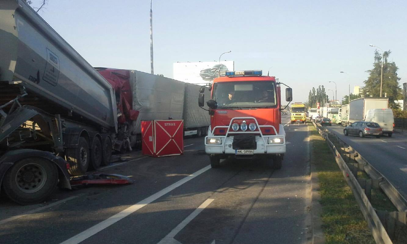 Wyjazd z Warszawy w stronę Marek jest zablokowany po zderzeniu trzech ciężarówek. Nie żyje kierowca jednej z nich. Utrudnienia mogą potrwać do ok. 12.00.
