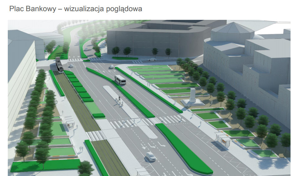 Nie inaczej wyglądać ma Plac Bankowy z którego zniknie parking pozostawiając miejsce na Zieleń.