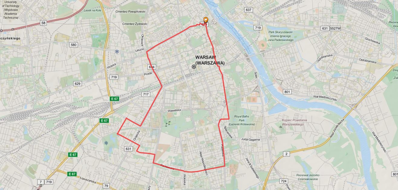 Trasa będzie wiodła przez Plac Zamkowy,Senatorska, Miodowa, Kapucyńska, al. „Solidarności”, Towarowa, pl. Zawiszy, Grójecka, Bitwy Warszawskiej 1920 r., Szczęśliwicka, Dickensa, Pawińskiego, Pruszkowska, Żwirki i Wigury, Racławicka, Odyńca, Puławska, pl. Unii Lubelskiej, Bagatela, Al. Ujazdowskie, Nowy Świat, Krakowskie Przedmieście, Plac Zamkowy. Łącznie uczestnicy pokonają trasę 18,4 km. W godz. 18-22 spodziewać się można utrudnień, nie tylko ze względu na Masę Krytyczną, ale ogólnie wzmożony ruch.