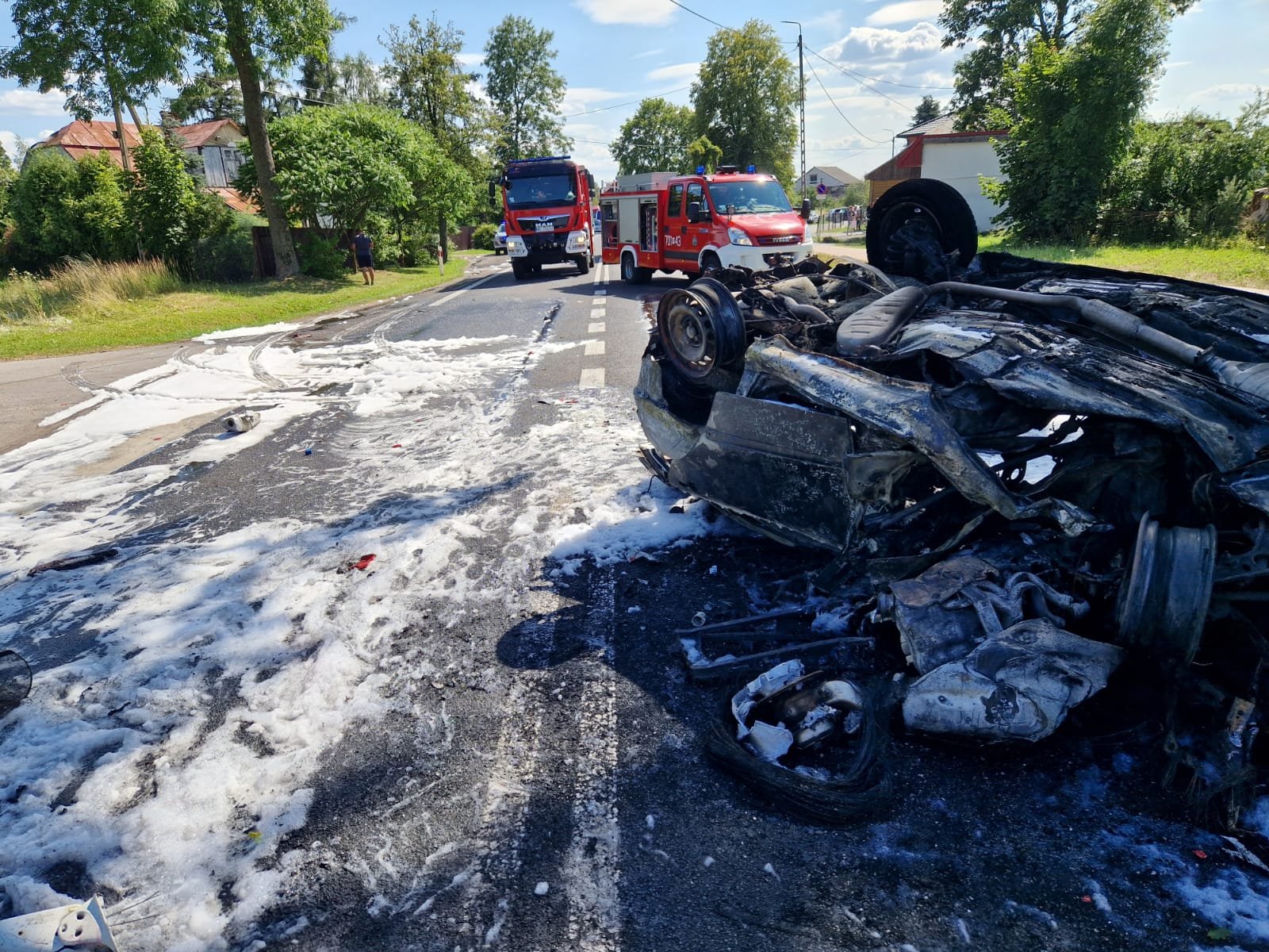 Mazowsze: Tragiczna czołówka auta z motocyklem. Pojazdy stanęły w ogniu