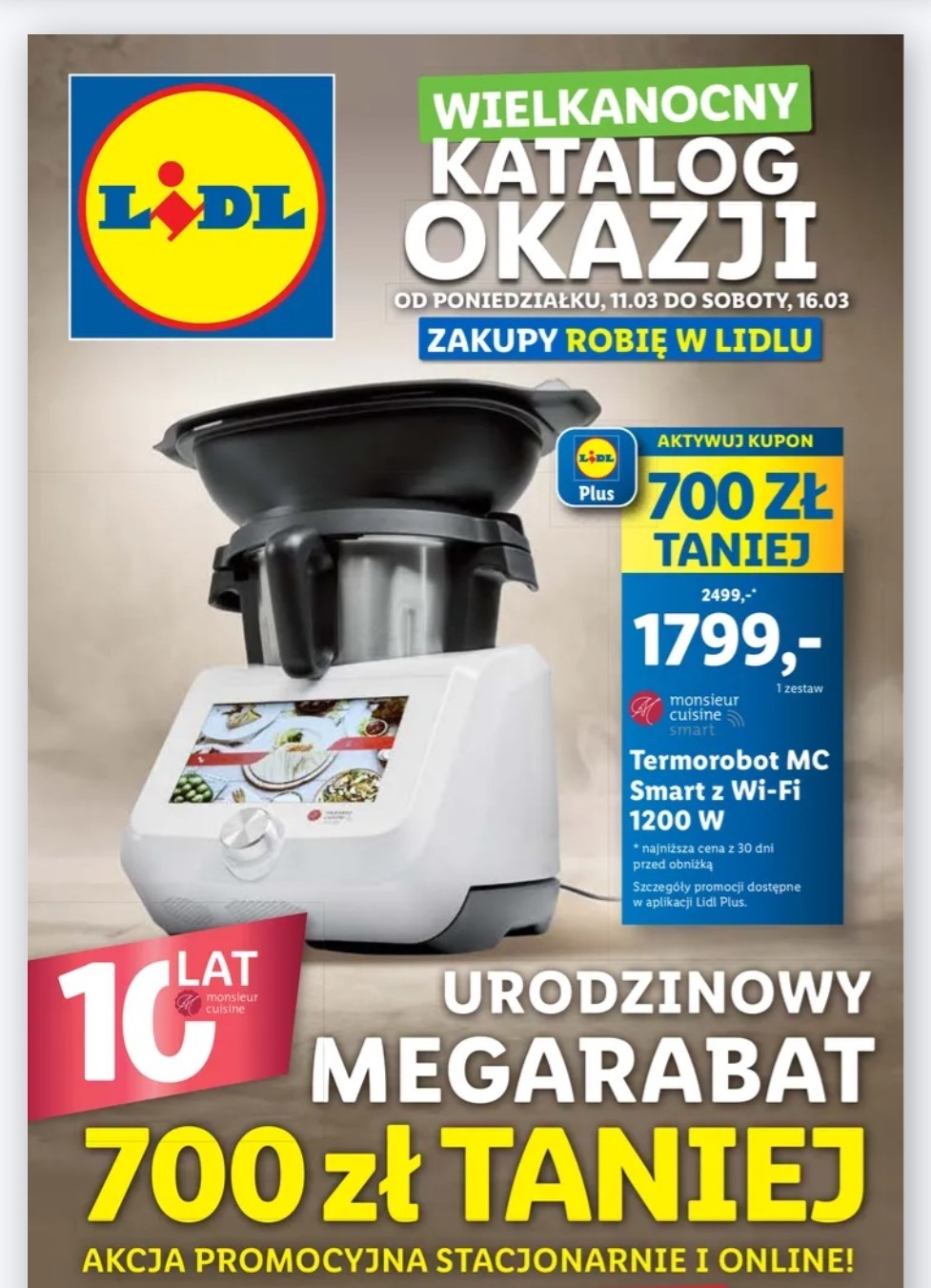 W ramach promocji „Wielkanocny Katalog Okazji”, Lidlomix dostępny jest w obniżonej cenie o 700 zł, co stanowi znaczny rabat z pierwotnej ceny 2499 zł.