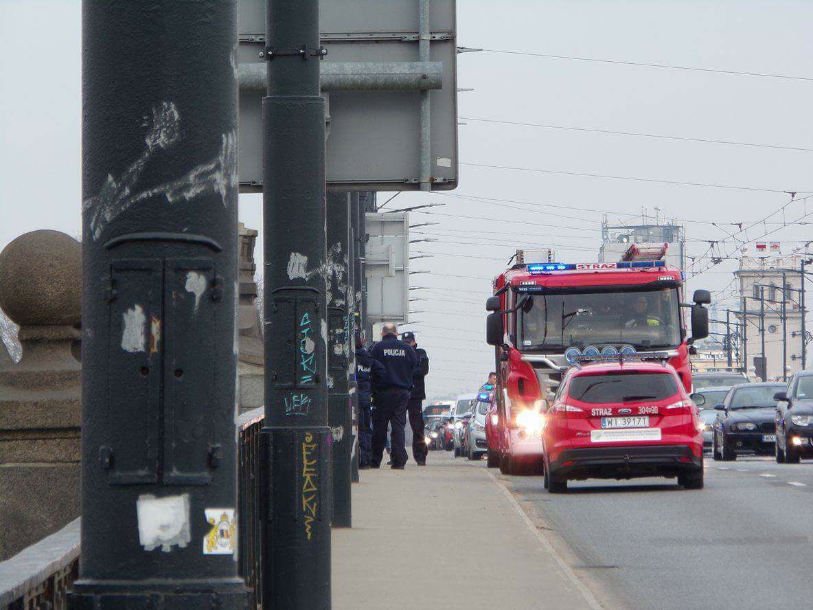 Trwa policyjna akcja na moście Poniatowskiego. Mężczyzna stoi na moście i grozi, że skoczy do Wisły.