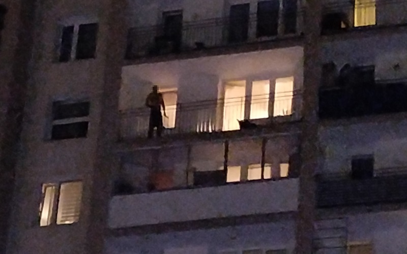 Uzbrojony w nóż mężczyzna, pojawił się za barierkami balkonu około godziny 21.