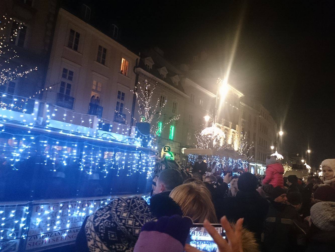 Po rozświetleniu choinki, świątecznymi lampkami rozjarzył się cały Trakt Królewski, aż do Wilanowa. Warszawiacy przeszli z pl. Zamkowego do ronda de Gaulle’a we wspólnej paradzie ze św. Mikołajem, zespołem Mazowsze i miejskimi maskotkami – misiem Ursynkiem, Panem Kropelką, kapitanem Wyderką, Krecikiem z metra i Bilecikiem ZTM.