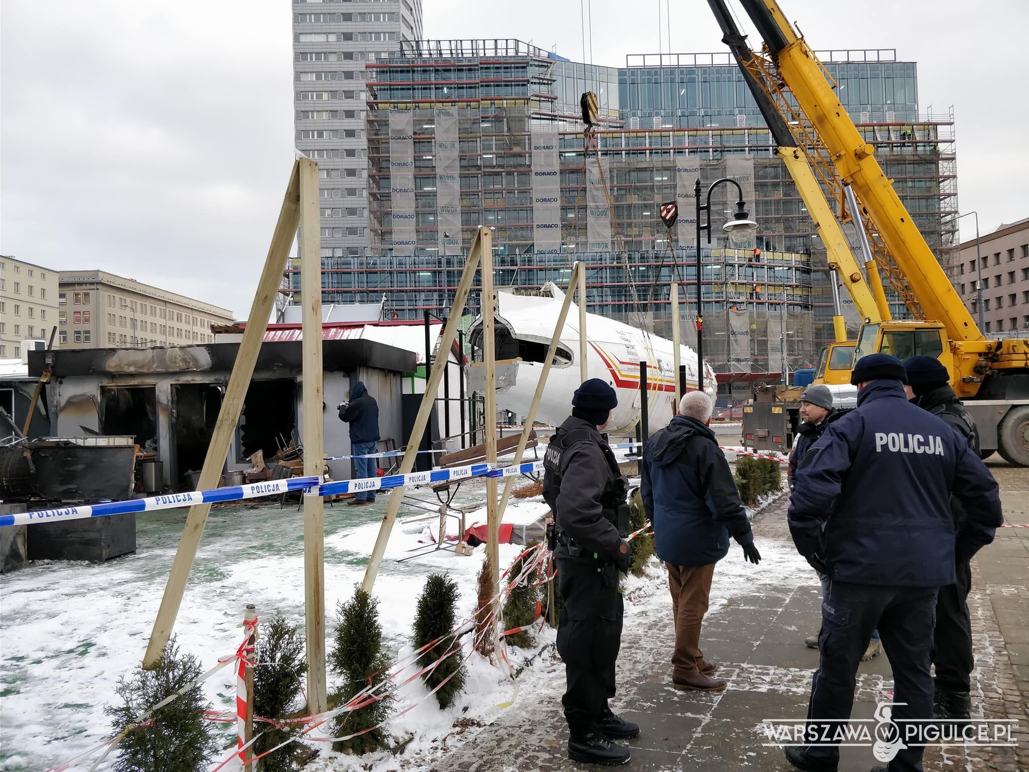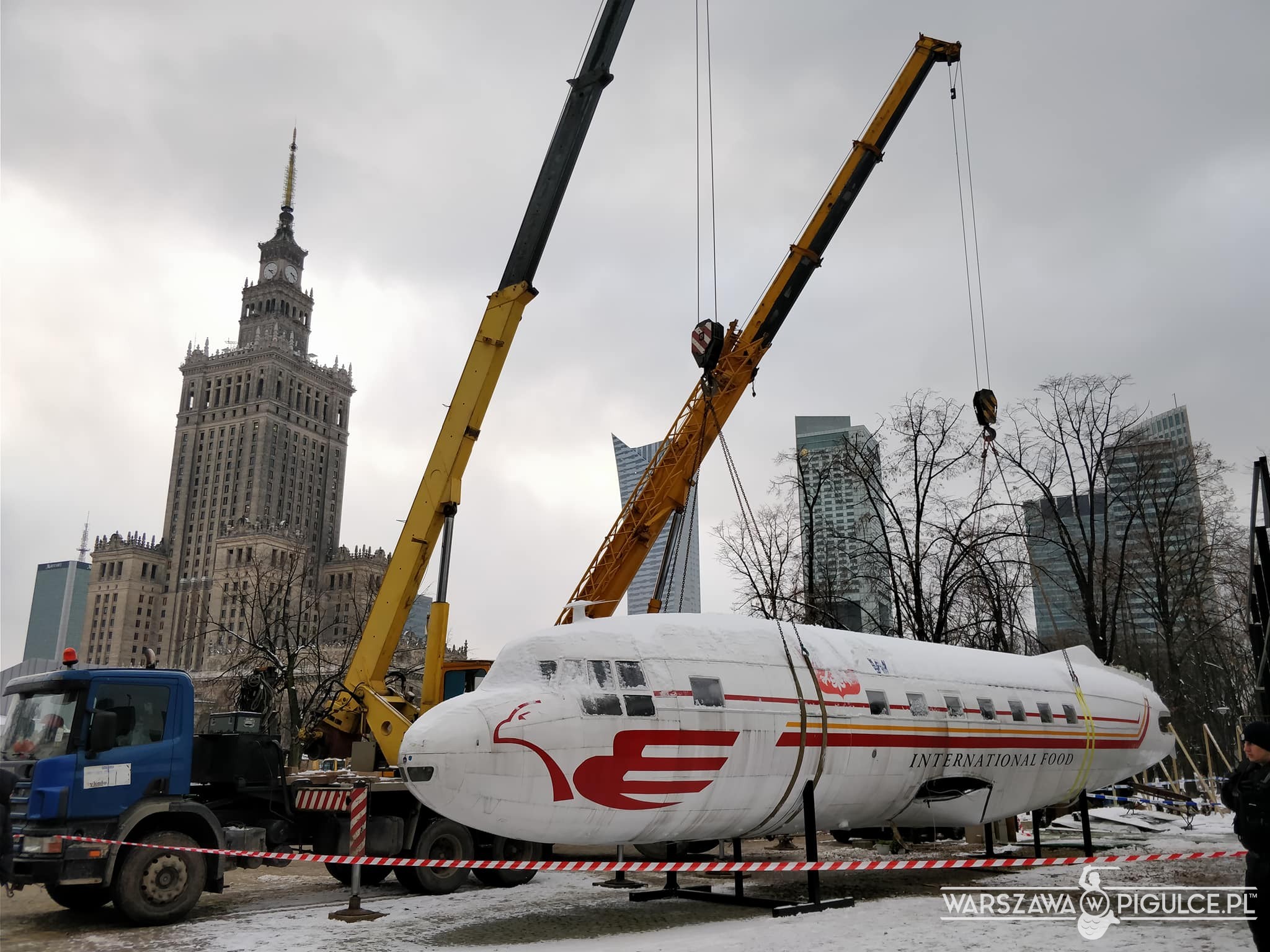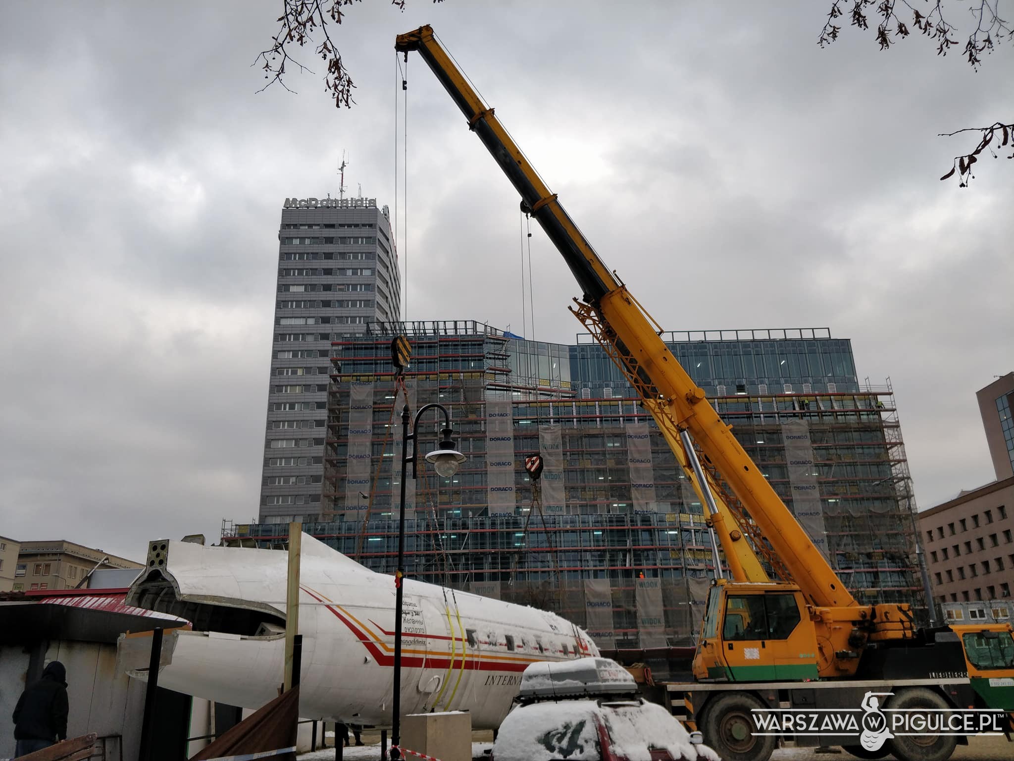 Samolot-restauracja znika sprzed pl. Defilad. Rozpoczęta rano akcja demontażu i wywożenia konstrukcji ma się już ku końcowi. Za całość zapłaci Miasto Stołeczne Warszawa.