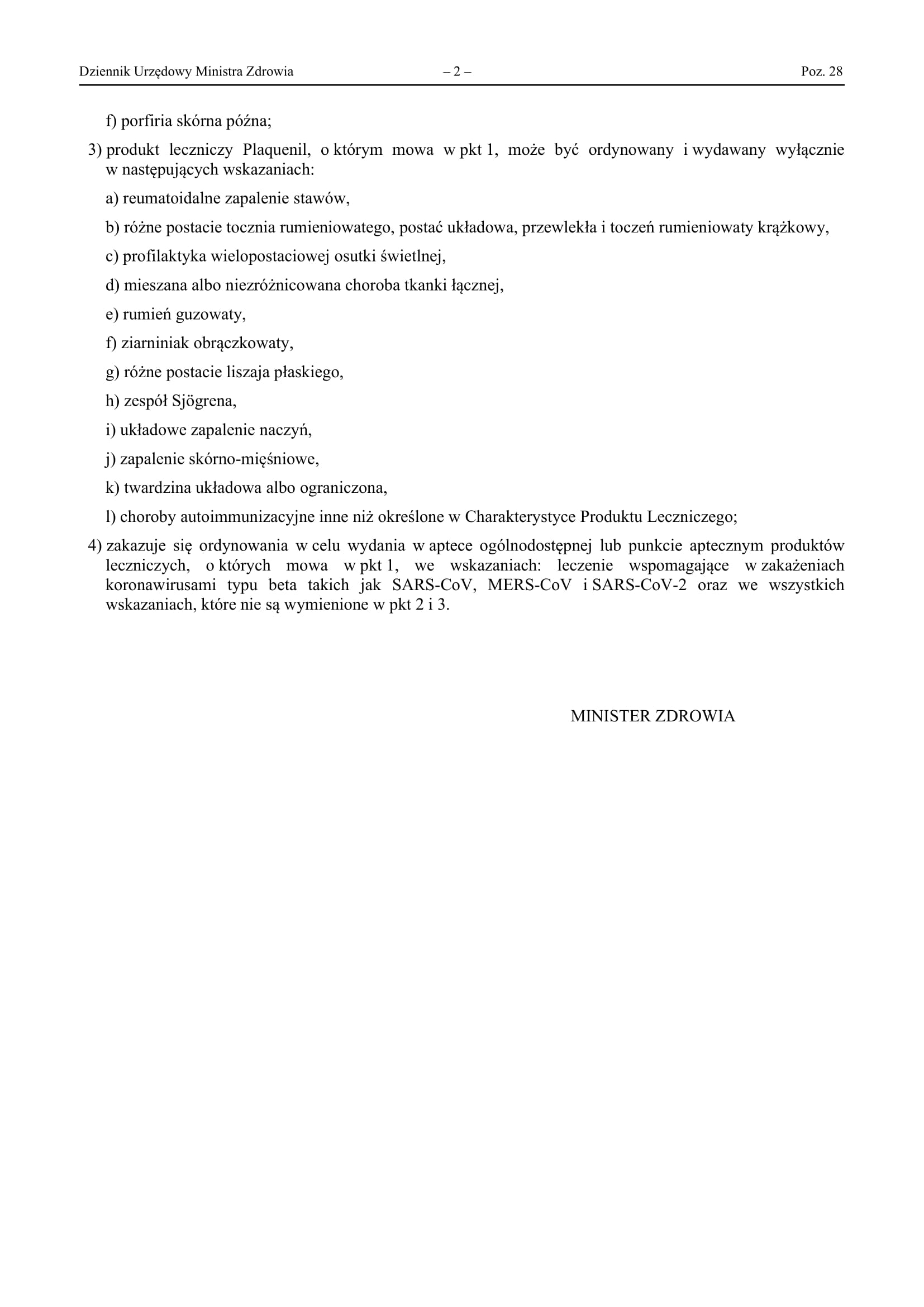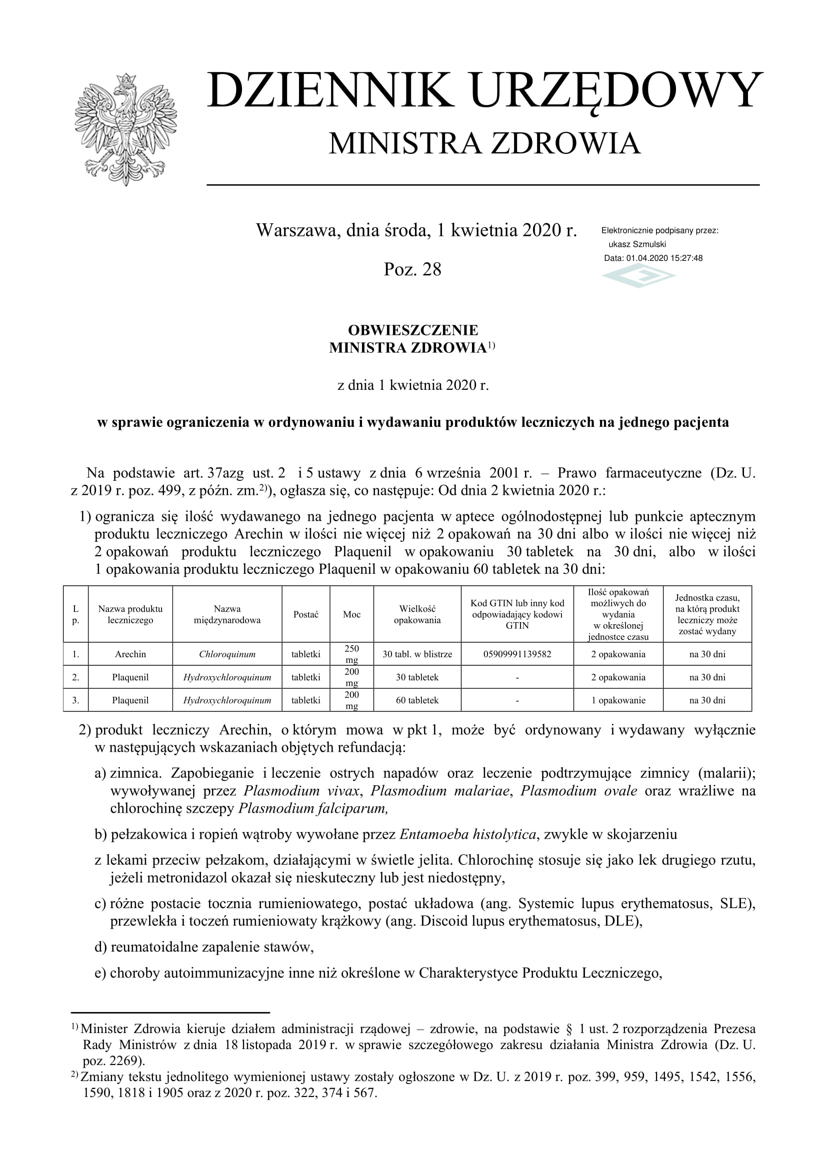 3) produkt leczniczy Plaquenil, o którym mowa w pkt 1, może być ordynowany i wydawany wyłącznie