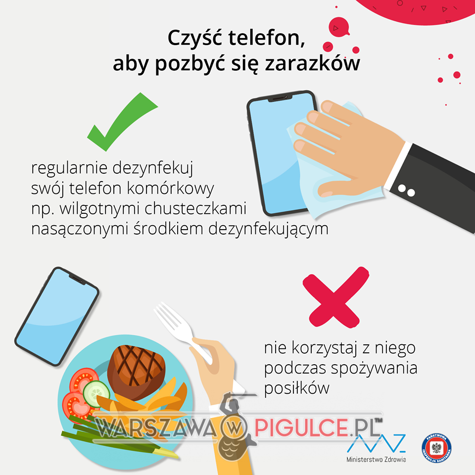 Regularnie dezynfekuj swój telefon komórkowy! (np. wilgotnymi chusteczkami nasączonymi płynem dezynfekującym)