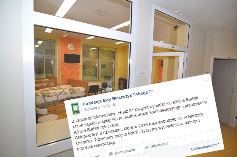 W Klinice Budzik doszło do kolejnego wybudzenia. Tym razem ze śpiączki wybudził się Mirek, który przebywał w niej od roku.