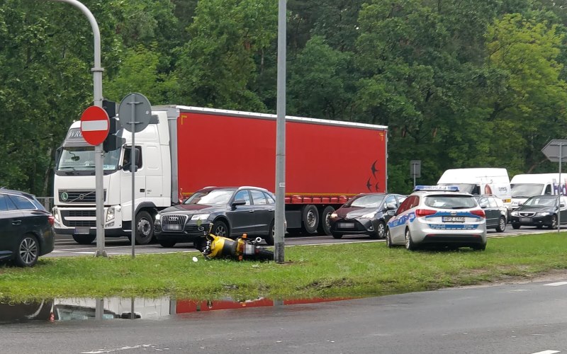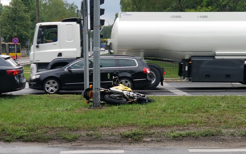 Młociny: wypadek z udziałem motocyklisty. Ogromne utrudnienia w obie strony
