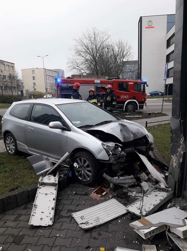 „U zbiegu ulic Cybernetyki/Postępu doszło do wypadnięcia pojazdu z drogi. W wyniku tego pojazd uszkodził skrzynkę elektryczną i budynek” – pisze Komenda Miejska PSP m.st. Warszawy.