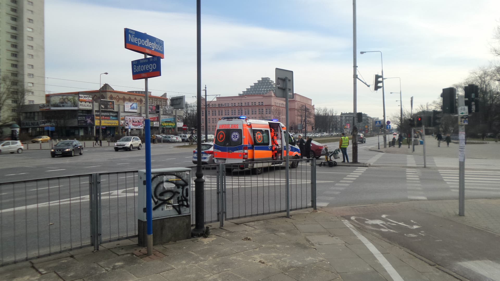 Dwa pasy al.Niepodległości jak i Batorego są zablokowane. Na miejscu pracują służby.