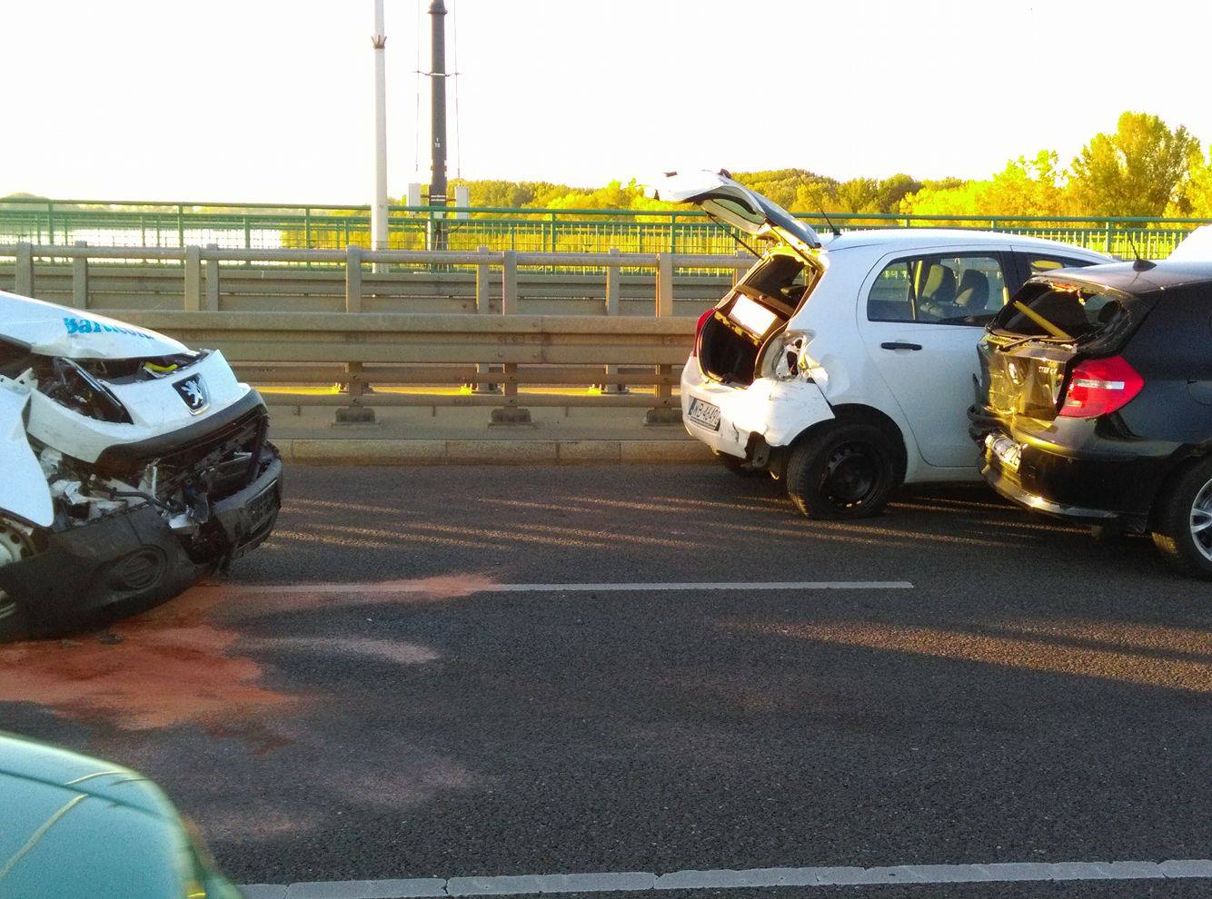 Most Północny sparaliżowany po wypadku. Zderzenie 3 samochodów i wyciek benzyny z jednego z nich