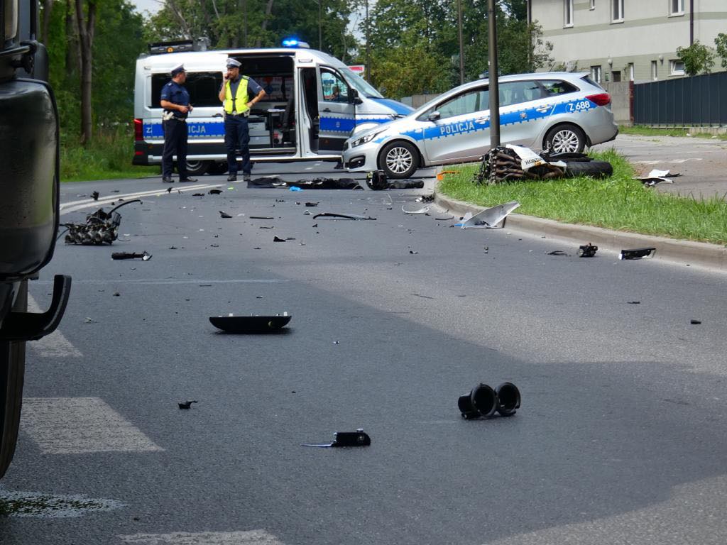 Z nieoficjalnych informacji wynika, że motocyklem jechał policjant po służbie. Kierujący ciężarówką jest trzeźwy.
