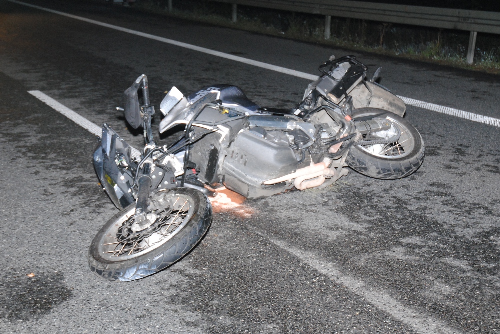 Podczas tego manewru kierujący ciężarówką zjechał na prawą stronę, i w tym momencie motocyklista stracił panowanie nad pojazdem i uderzył w bariery energochłonne.