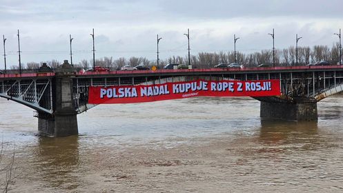 Na moście Poniatowskiego zawisł ogromny baner „Polska nadal kupuje ropę z Rosji”