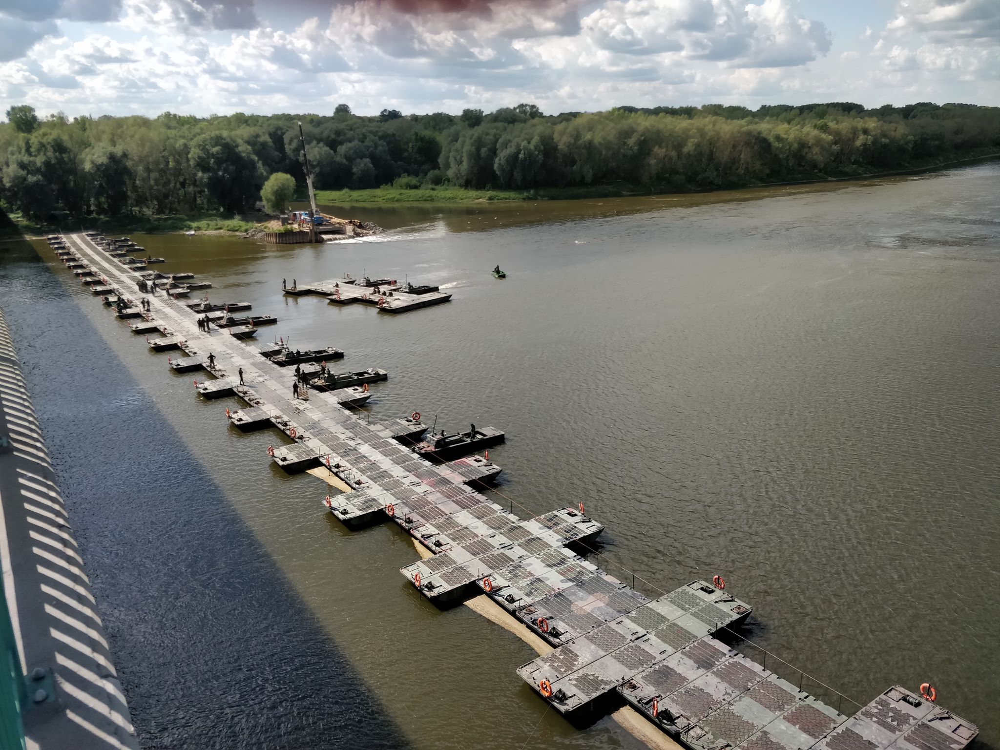 Most pontonowy jest już ukończony. Teraz wojsko i inżynierowie szykują się do położenia rurociągu, który ma za zadanie przetransportować nieczystości z lewego na prawy brzeg Wisły.