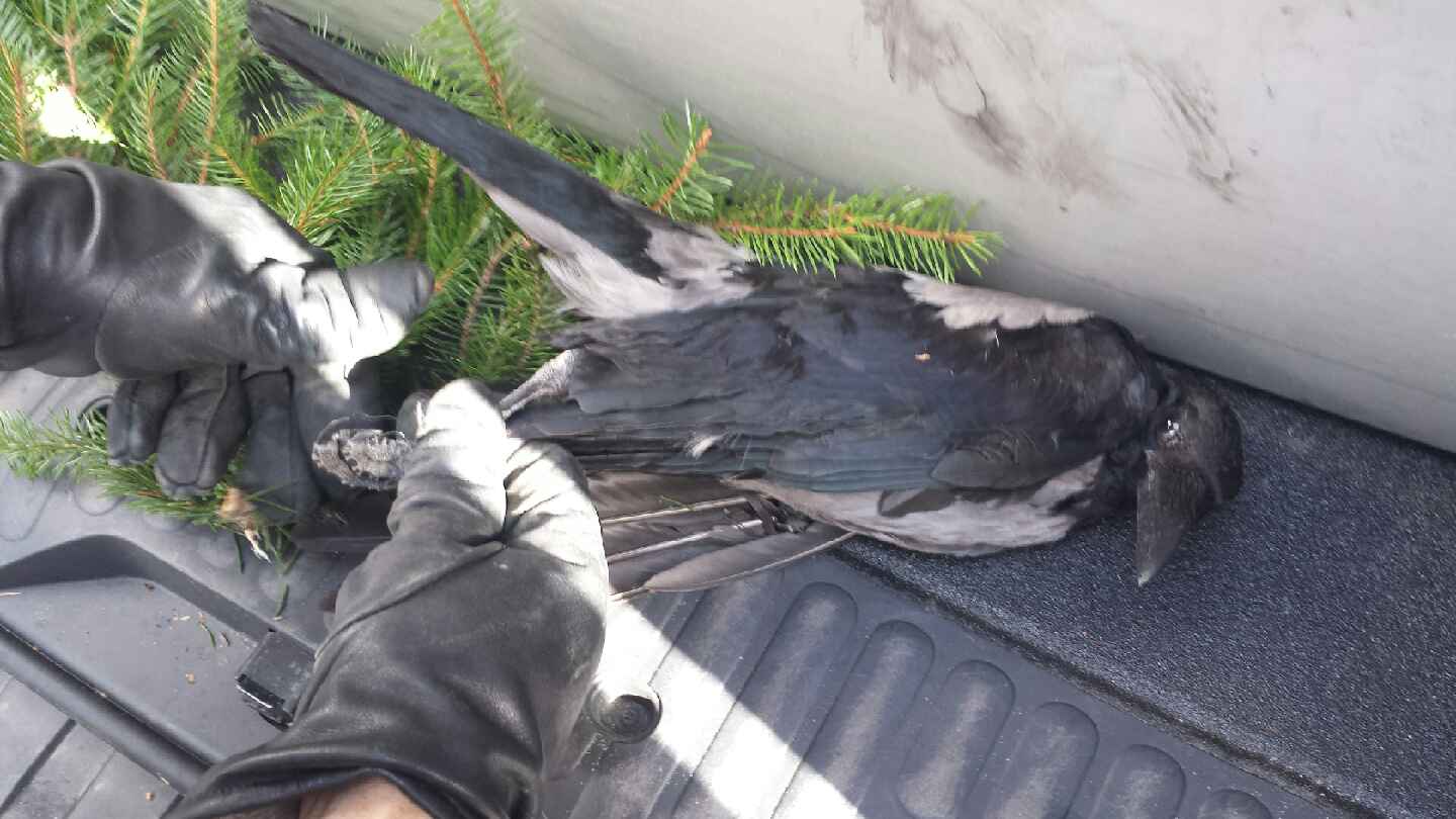 „Weszliśmy na murek i przy pomocy chwytaka przysunęliśmy do siebie gałąź na której znajdował się ptak. Okazało się, ze wrona miała nawiniętą na nogę cienką żyłkę, która zaplątała się w gałęziach. Przy pomocy scyzoryka rozcięliśmy żyłkę i uwolniliśmy ptaka” – opowiada podejmujący interwencję st. insp. Maciej Zuba z Referatu ds. Ekologicznych Straży Miejskiej m. st. Warszawy.