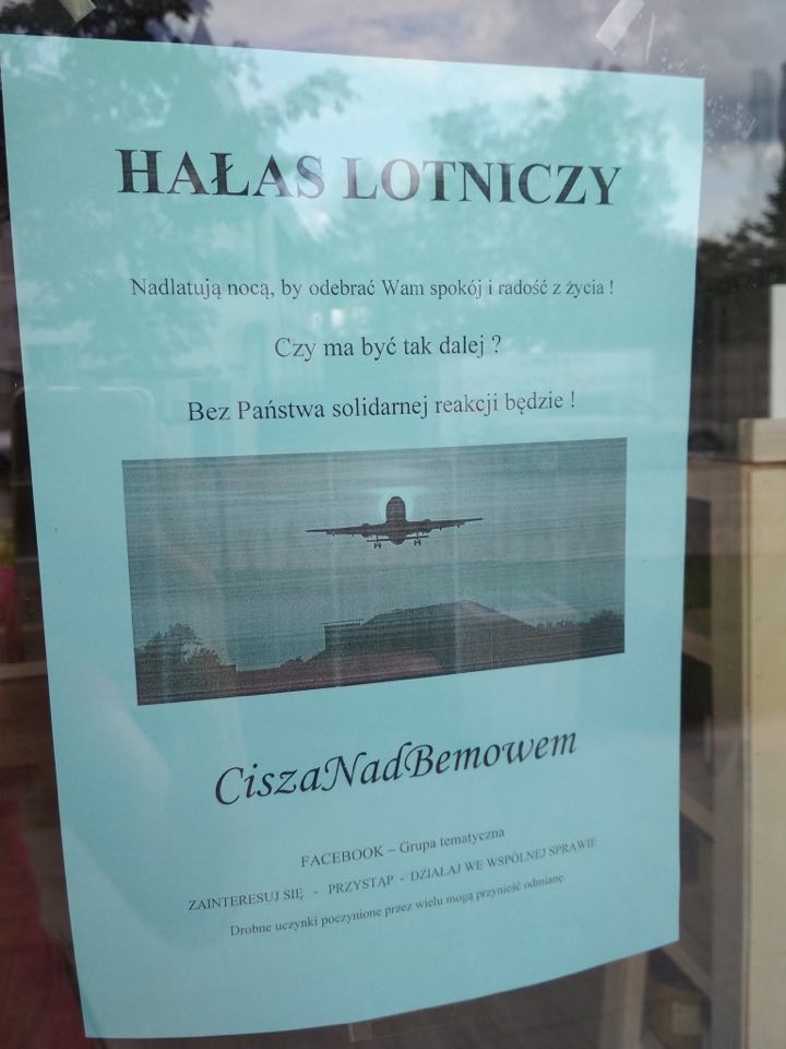 Niektórzy mieszkańcy Bemowa protestują przeciwko hałasowi lotniczemu z Okęcia. Rozklejają plakaty i zachęcają do przyłączenia się do grupy na Facebooku.