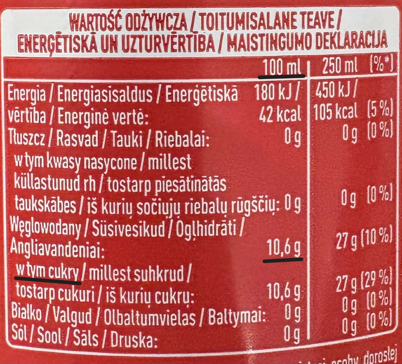„W tym cukry” pokazuje, ile cukrów prostych zawiera produkt – zarówno naturalnych, jak i dodanych – ale nie mówi, skąd one pochodzą, dlatego zawsze warto sprawdzić skład.