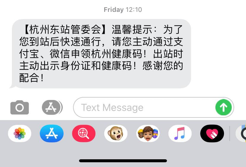 Zaczynając od dworca w Hangzhou, przed kontrolą osobistą minąłem co najmniej kilka kamer termowizyjnych. Ciekawą sprawą jest, że „system” odnotował fakt, że idę w stronę dworca i wysłał mi wiadomość, żebym przygotował „kod zdrowia” przed wejściem co pozwoli na sprawne przejście przez kontrolę.