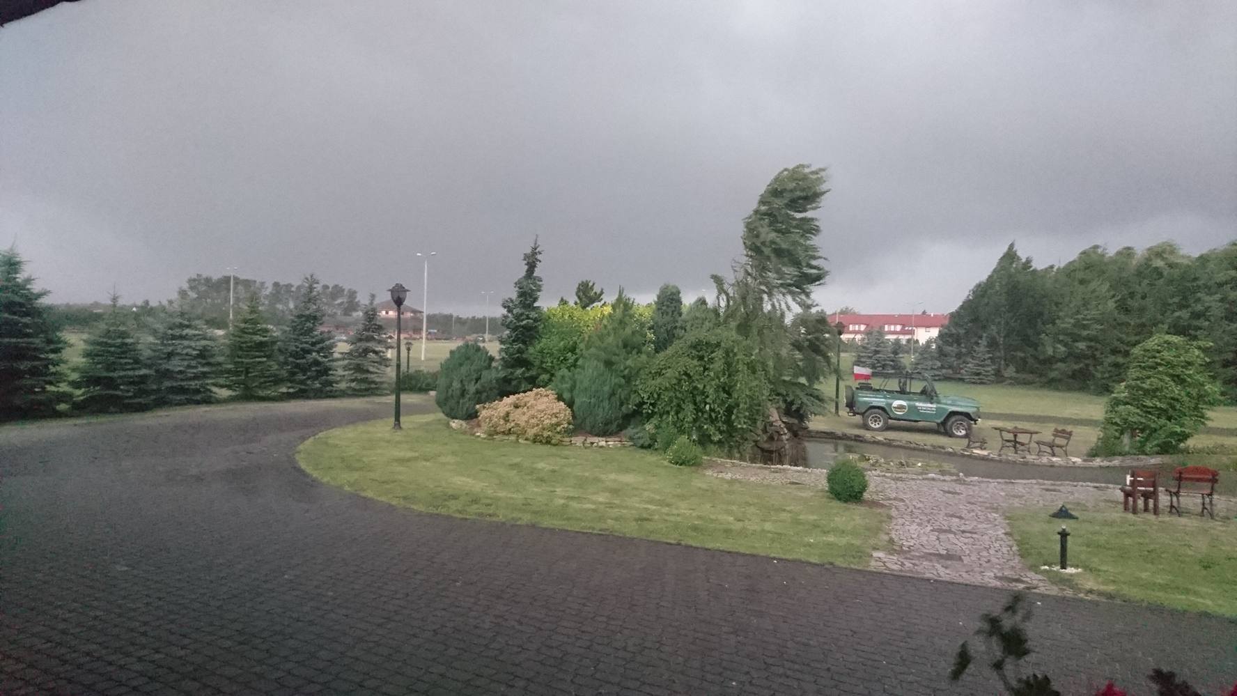 „Wiatr przybiera na sile niż w momencie wykonywania zdjęć. Mocniejsze są też opady deszczu. Przez kwadrans nie było prądu” – relacjonuje Pan Maciej