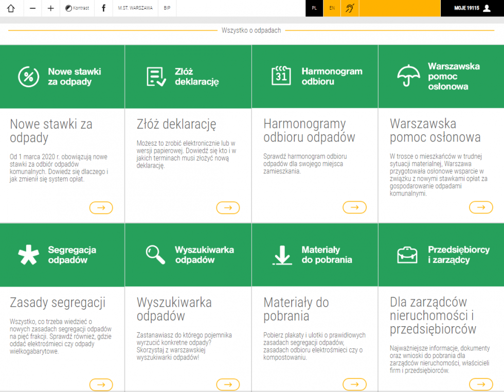 Formularze deklaracji, harmonogramy odbioru odpadów, informacje związane z nowym systemem opłat można zaleźć na nowej odsłonie strony czysta.um.warszawa.pl. Znajduje się za tam również wyszukiwarka z blisko 600 przykładami poprawnej segregacji na pięć frakcji.