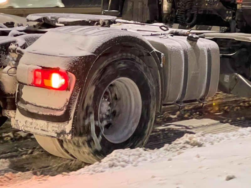Jedna z ciężarówek założone ma łańcuchy, jednak nie zlikwidowało to problemu.