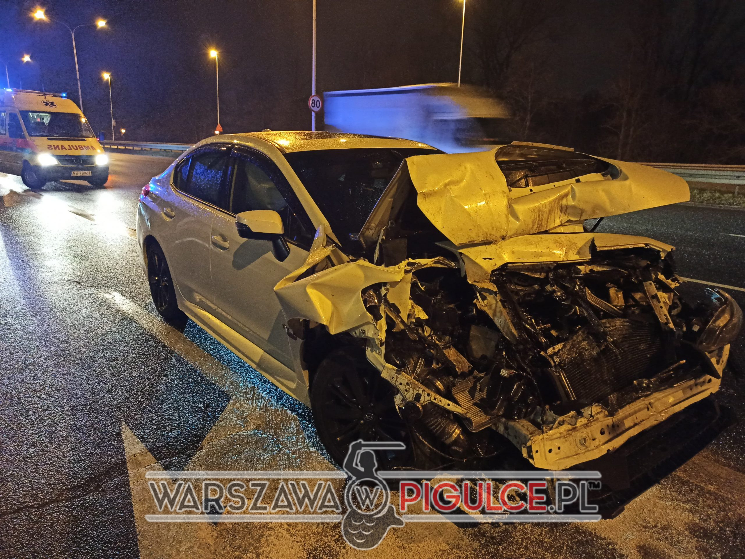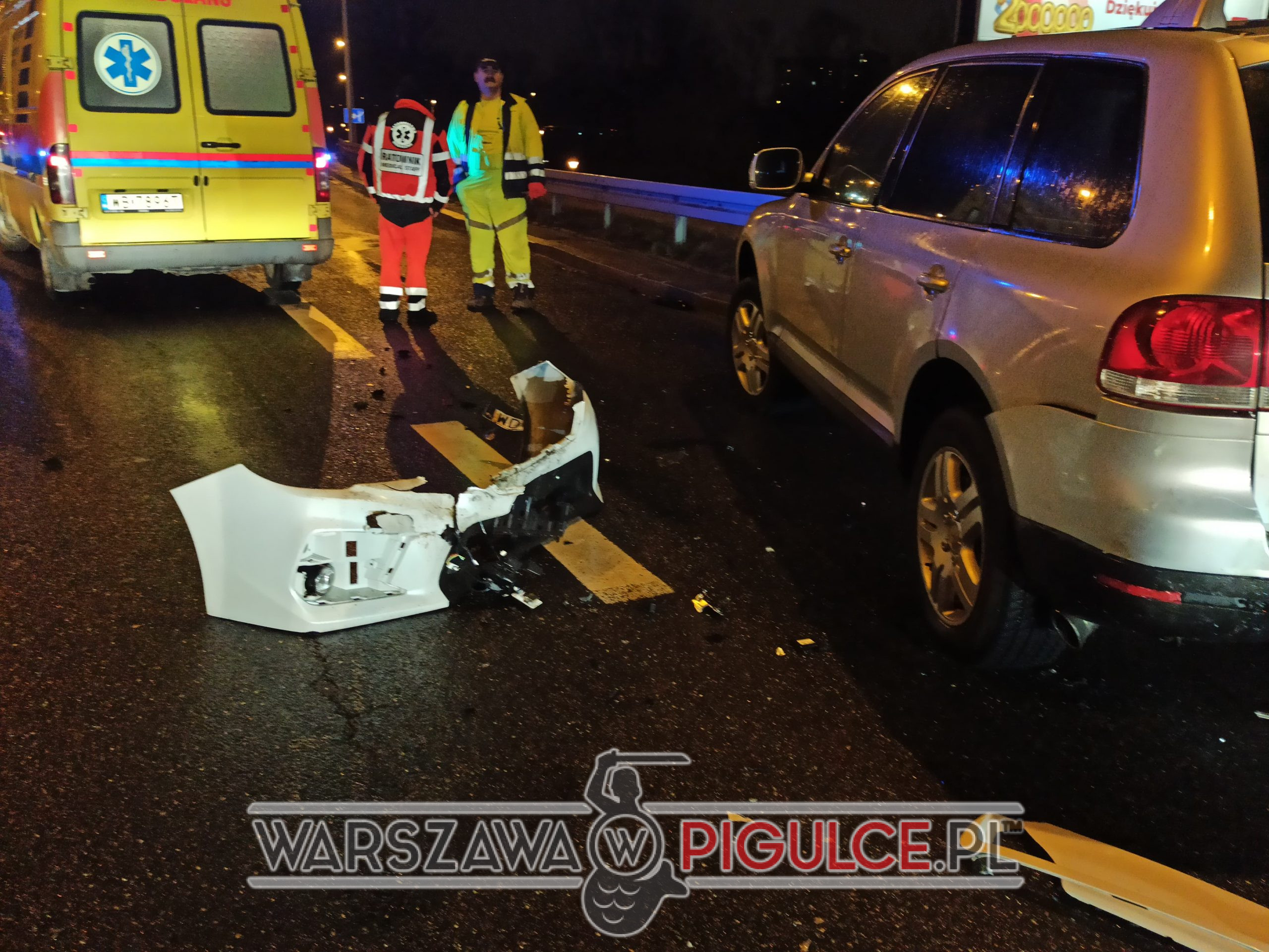 Na Wisłostradzie, na wysokości ul. Gwiaździstej, w kierunku centrum, doszło do poważnego wypadku z udziałem Subaru oraz Volkswagena.